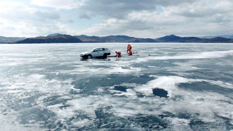 The director could have used the opportunity to propagandize in favor of arguments of the 99.5% of scientists who warn of climate change but instead allows us in the audience to infer what seems obvious to anyone who is not mentally retarded. There is high drama in Lake Baikal as auto drivers, assuming that the ice would not melt for another three weeks, drive across the solid foundation only to sink when the ice gives way. We actually witness a poor guy who is photographed making the fatal move and commiserate with one of the workers who are fishing out a car when he sobs that his friend has died.