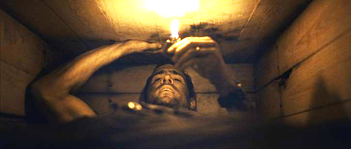 Synopsis: Paul Conroy is not ready to die. But when he wakes up 6 feet underground with no idea of who put him there or why, life for the truck driver and family man instantly becomes a hellish struggle for survival. Buried with only a cell phone and a lighter, his contact with the outside world and ability to piece together clues that could help him discover his location are maddeningly limited. Poor reception, a rapidly draining battery, and a dwindling oxygen supply become his worst enemies in a tightly confined race against time – fighting panic, despair and delirium, Paul has only 90 minutes to be rescued before his worst nightmare comes true.