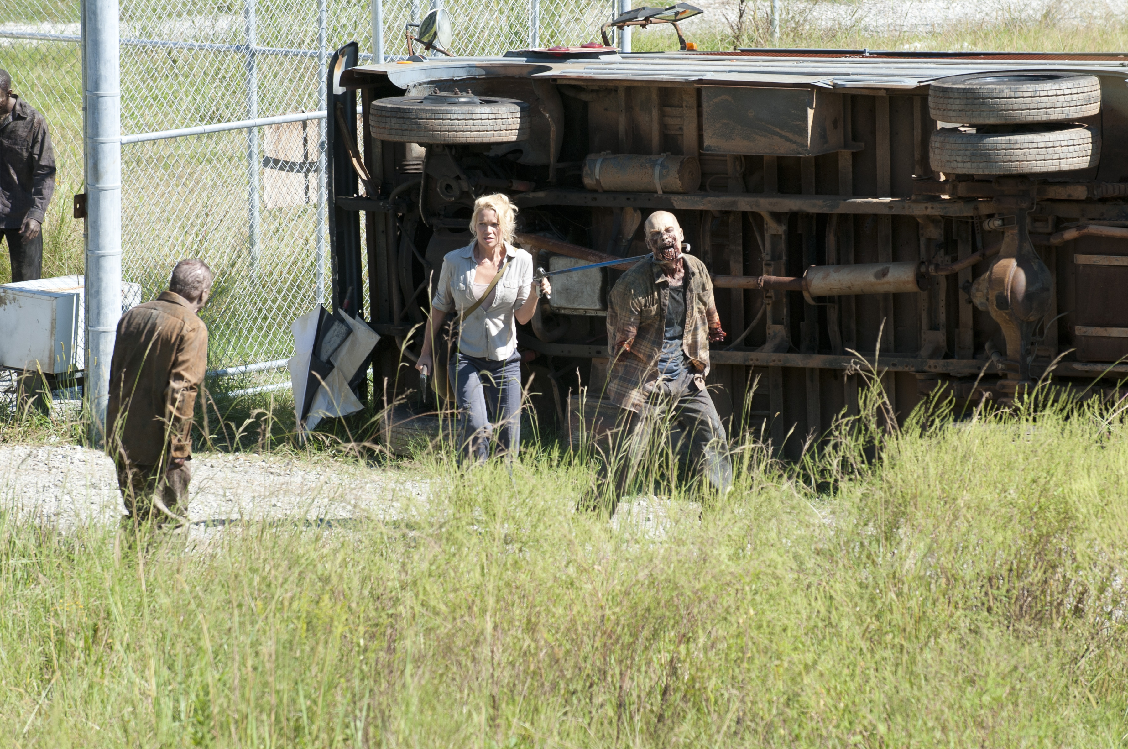 The scene everyone’s talking about from the episode was that amazing (and, of course, graphic) scene where a zombie was basically wrangled into submission. I know I’ve never seen anything like that on TV or even a zombie film, so the fact that this type of show is on cable and not on HBO or Showtime is spectacular.