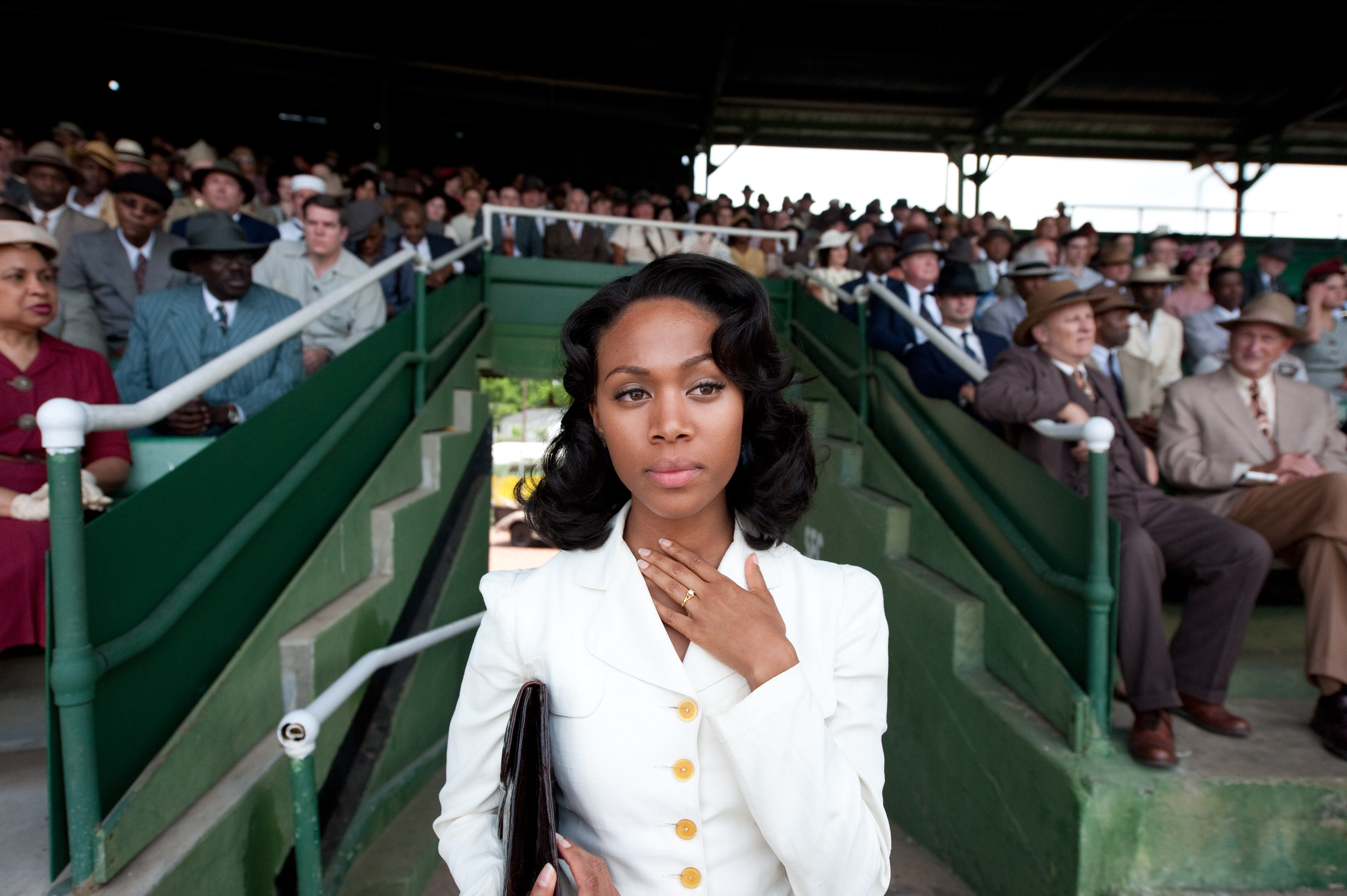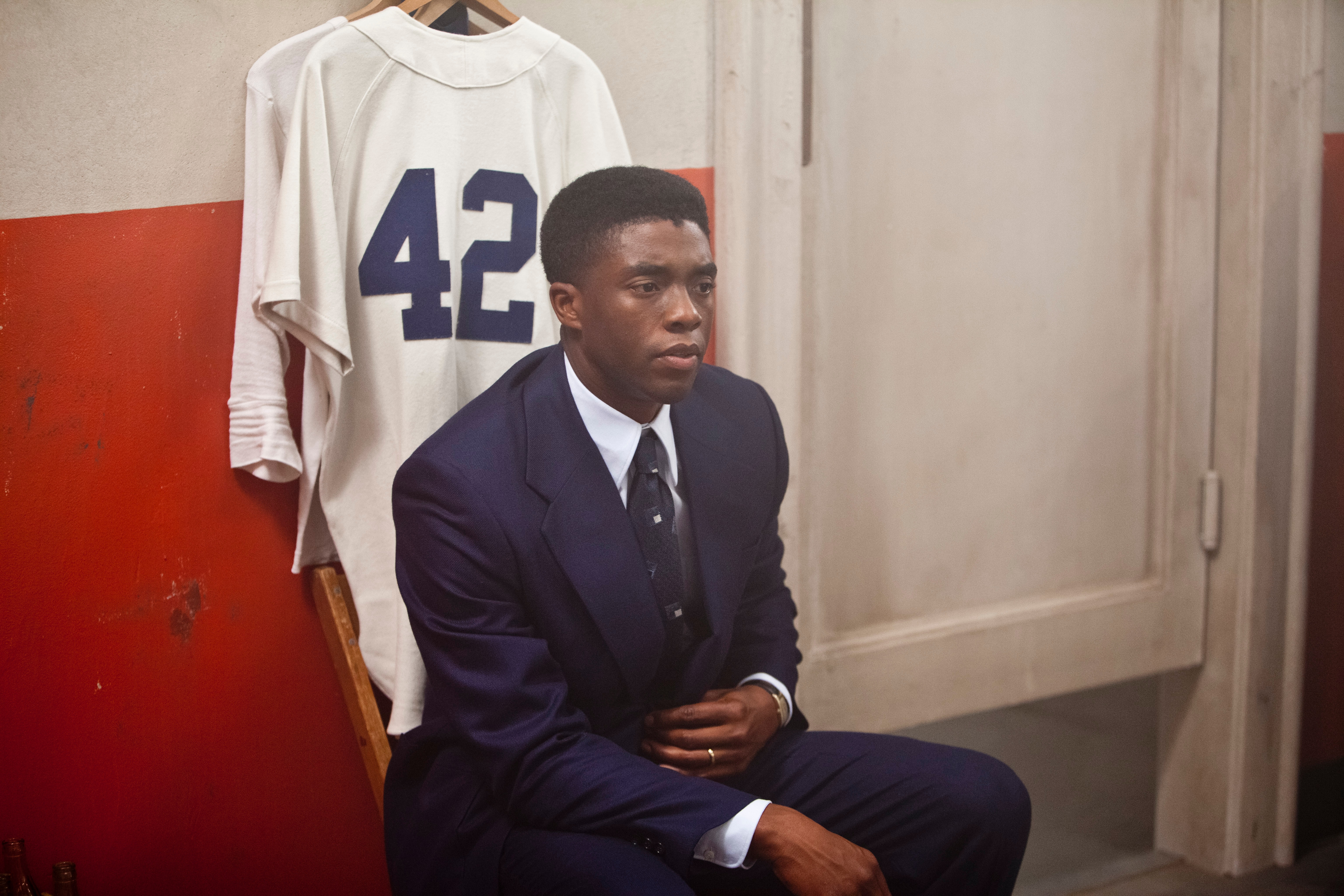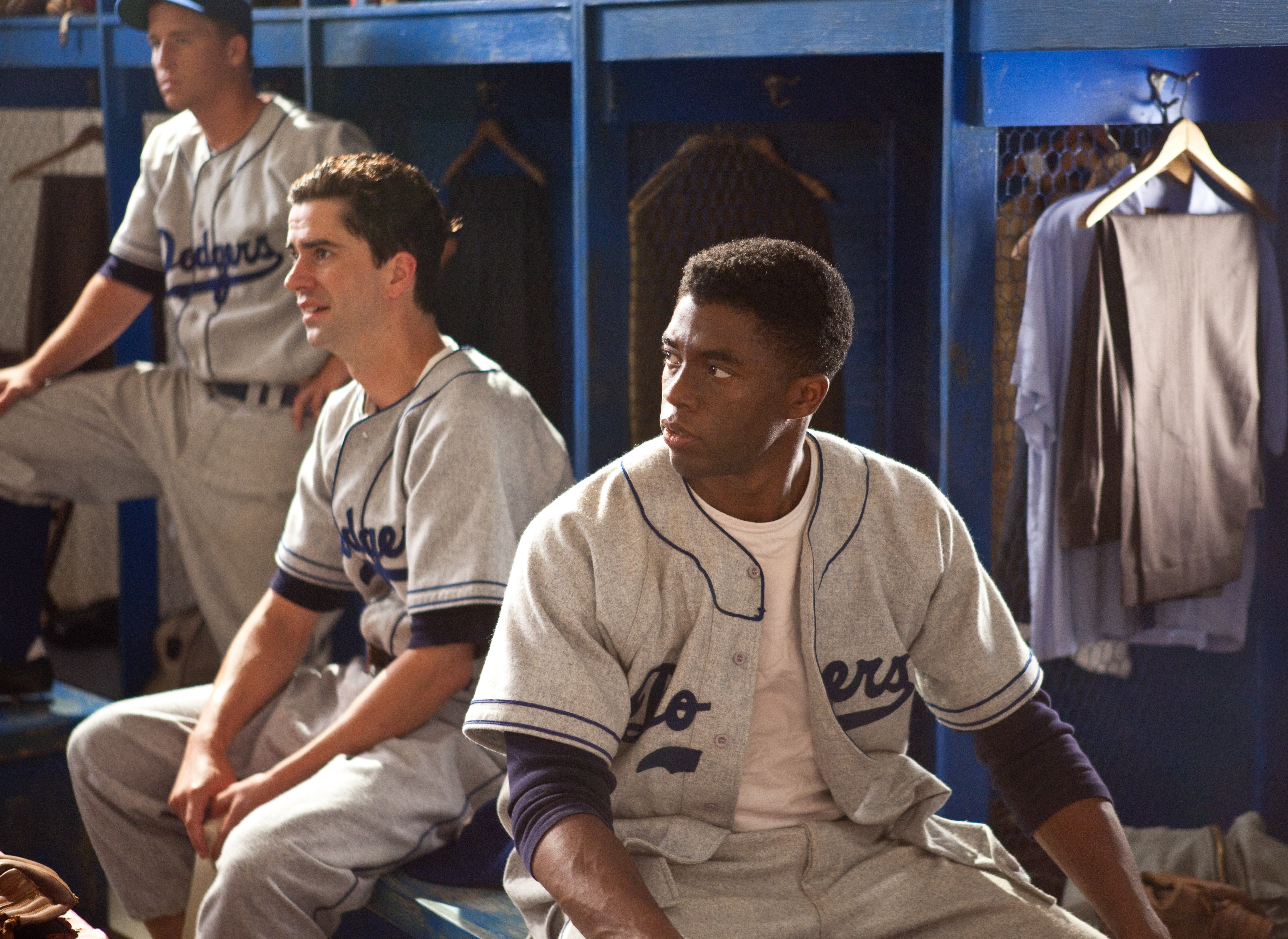 “42” is directed by Brian Helgeland, produced by Thomas Tull and executive produced by Dick Cook, Jon Jashni, Jason Clark. Chadwick Boseman stars as Jackie Robinson. Also starring in the film are Harrison Ford, Nicole Beharie, Christopher Meloni, Andre Holland, Lucas Black, Hamish Linklater, Ryan Merriman and T.R. Knight.