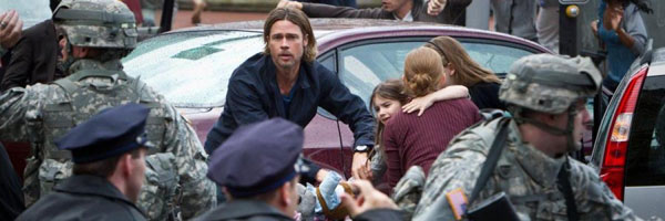 The first scene began with a moment familiar from the film’s trailer. Pitt’s character is in the car with his family playing a guessing game while in the middle of the congested Philadelphia streets. After his wife points out the abundance of helicopters, Pitt turns on the radio, which blares something about a recent outbreak of rabies. Soon thereafter, a motorcycle cop swipes the side view mirror off their car. Pitt gets out to take a look and collect the severed piece, but, it turns out, a broken mirror is the least of his worries. He catches a glimpse of an explosion in the distance after which all hell breaks loose.