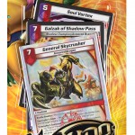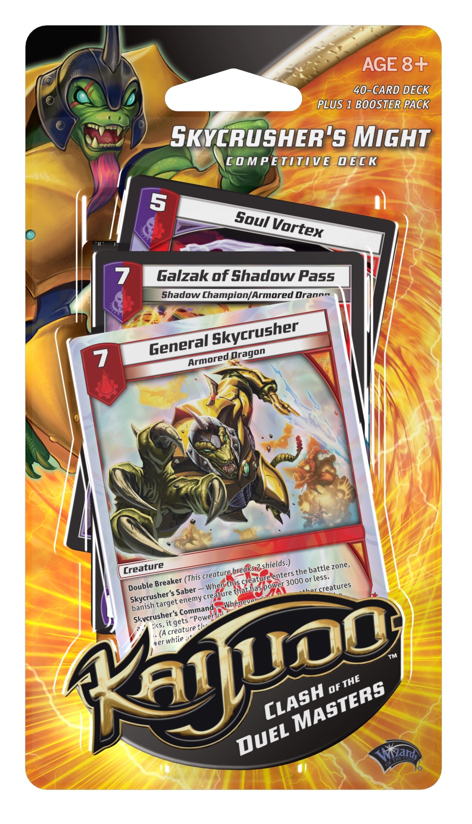 Five lucky ShockYa readers can win a special Kaijudo: Clash of the Duel Masters prize pack complete with intro packs of both Psychic Assault and Skycrusher’s Might as well as three booster packs. Below is a gallery of some of what you’ll receive.