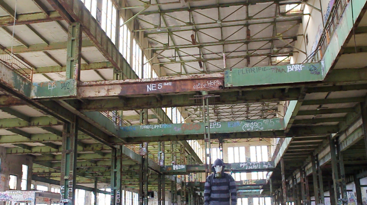 “I didn’t spend much time in development…I knew that there was limits to what I could do myself (since I had no money to create the short). I knew I had to focus on telling the story through someone who was going through. Then I thought why not let him be the last one on earth as well. So I focused on shooting the story of the man in and around Perth [Western Australia]. I bought a gas mask off eBay and my partner and I drove around looking for some nice locations. I then…bought some stock footage and scoured the archives online for some royalty free stuff to put in.”