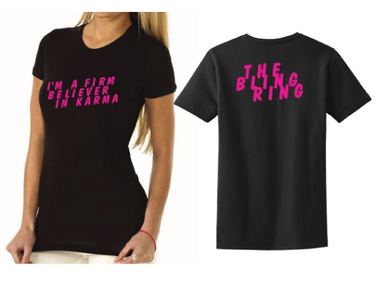 If you’re a fan of the film, you might want to enter in our “Bling Ring”-themed Twitter giveaway! We’ll be giving one lucky winner a prize pack consisting of “The Bling Ring” poster, T-shirt and book (pictured below in the gallery). This prize pack comes out to a $50 value.