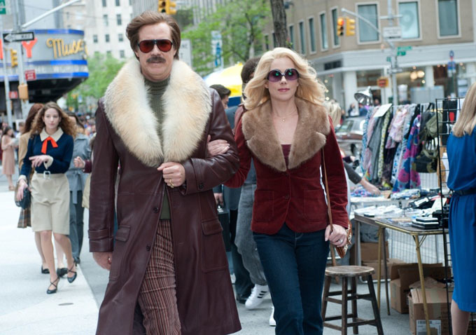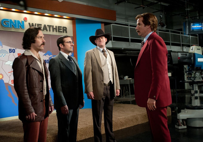 If you’re a fan of the series, The Playlist has posted some new images from the film. We see the characters in the early ’80s as they embark on a new adventure–the advent of the 24-hour news cycle. The characters are now part of an experimental 24-hour news network and when it comes to this new type of news, there are bound to be conflicts (especially with Ron Burgundy (Will Ferrell), who probably already thinks he’s the star). Check out the image of the team at the news station, along with another image of Ron and Veronica Corningstone (Christina Applegate) walking arm in arm below.