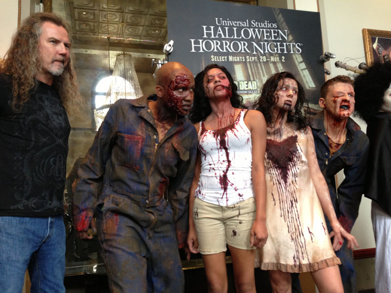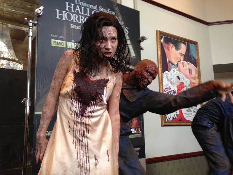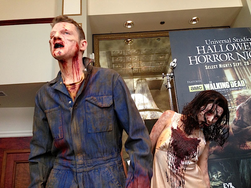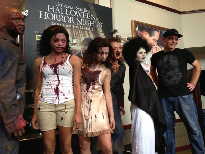 Halloween Horror Nights Creative Director John Murdy begins off the most terrifying time of the year with the annual showcase of some crazy creatures we should expect to see running around the park in less than a month’s time. There are a couple of familiar creatures with the zombies of “The Walking Dead: No Safe Haven,” some terrifying women from “Evil Dead: Book of the Dead” and a cool re-imagined Bride of Frankenstein for “Universal Monsters Remix: Resurrection.” There was a surplus of masks sprinkled throughout this hall with some artists hard at work putting on the makeup for these ghoulish creatures, which was great to see. One minute there’s just a regular girl sitting there with a little piece of something on her face, the next it looks like half of her mouth has been cut open and it looks real. If a pedestrian came across her with never watching a lick of the “Evil Dead” remake, he/she would probably call 911 in seconds.