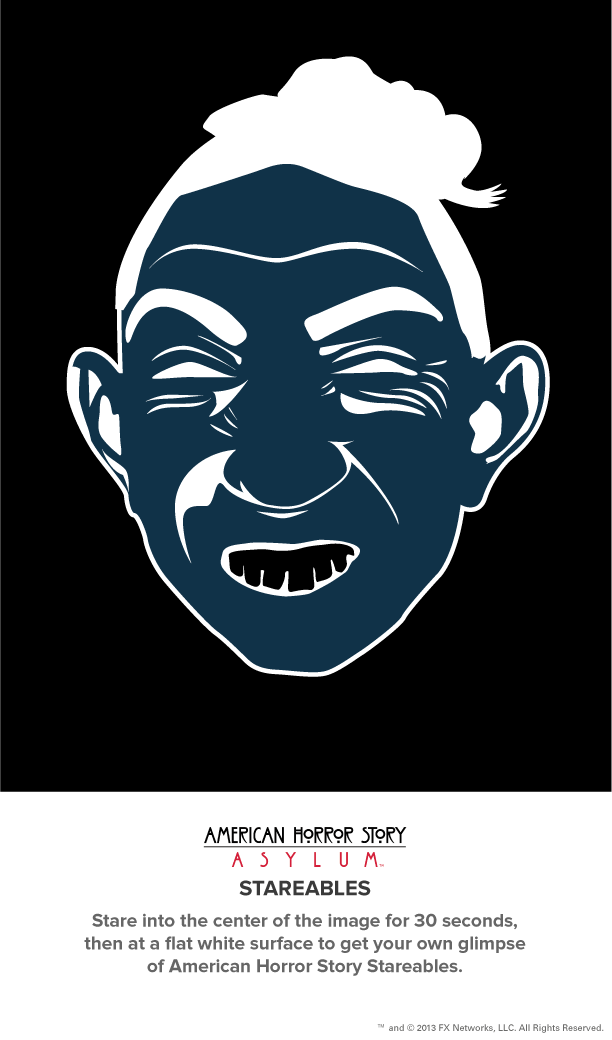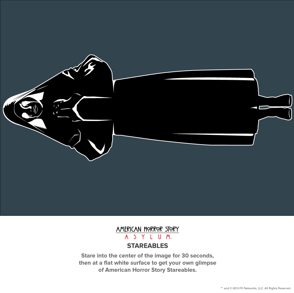 With the anticipated third season of the hit horror series, ‘American Horror Story,’ subtitled ‘Coven,’ set to premiere on Wednesday, October 9 on FX, the latest season of the drama, ‘Asylum,’ is set to be released on Blu-ray and DVD the day before. To celebrate the October 8 home released of ‘American Horror Story: Asylum,’ several sharable photos from the season have been released. By staring into the center of each photo for 30 seconds, and then at a flat white surface, viewers can obtain their own glimpses of a true American Horror Story.