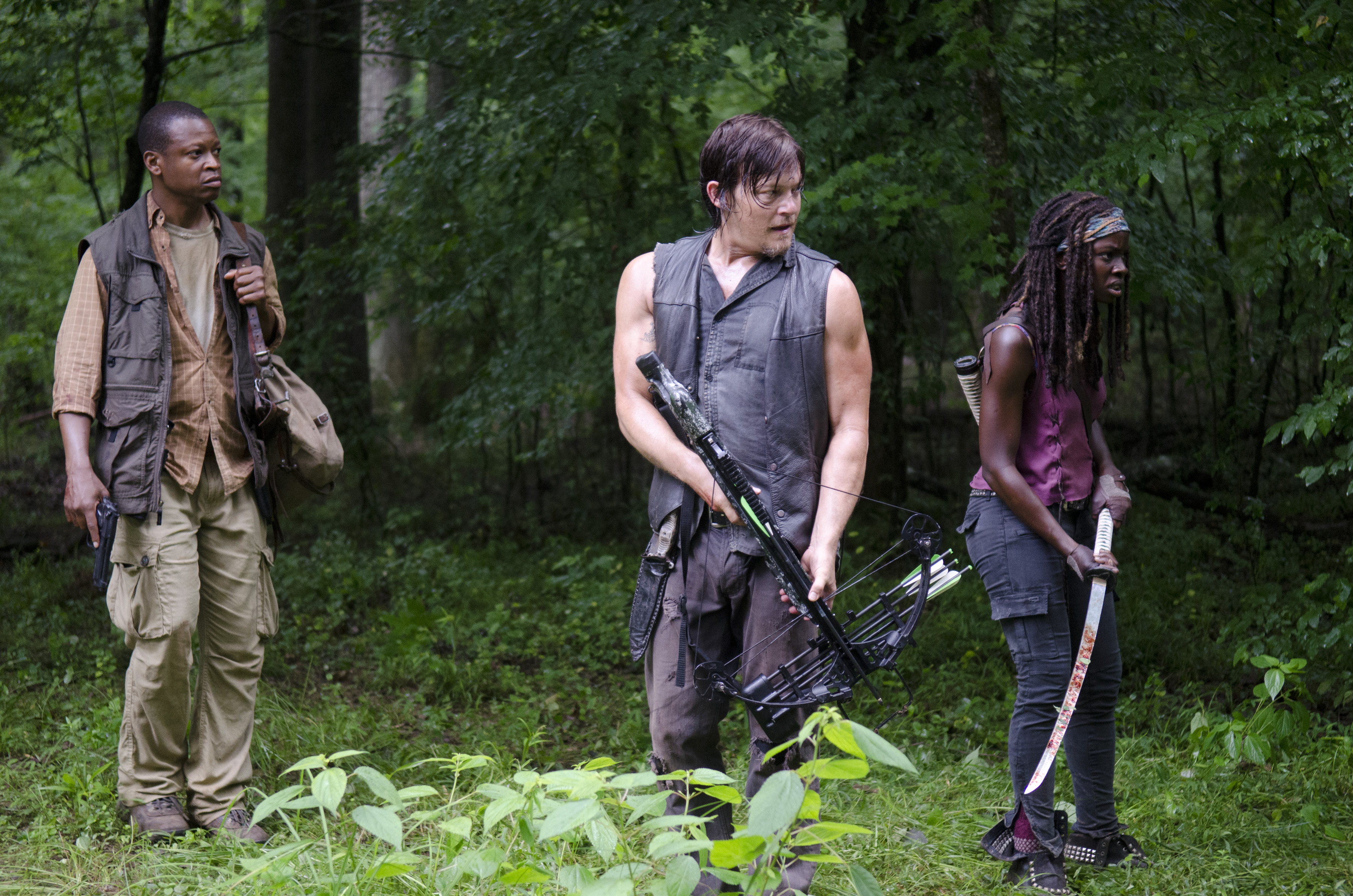 We’ve got some exclusive pictures from the upcoming episode! The pictures show Carol (Melissa Suzanne McBride) and Bob (Lawrence Gilliard Jr.), Daryl Dixon (Norman Reedus) and Michonne (Danai Gurira). Take a look at the stills below and try to guess what has them all looking so conflicted. (The easy answer is that it has something to do with zombies, but it could also have something to do with that super virus going around.)