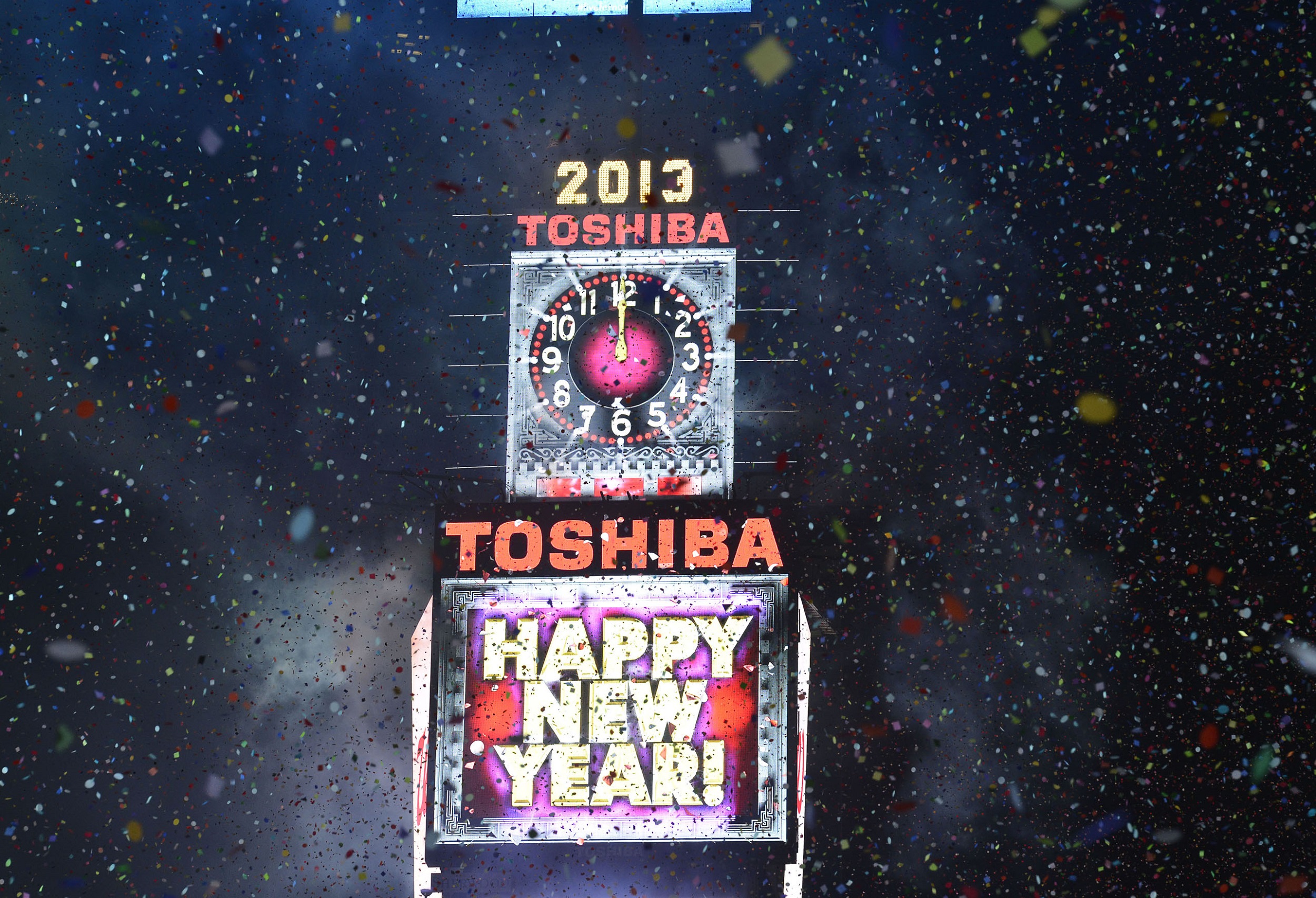 “For this year’s New Year countdown, from 6 p.m. to 12:15 a.m. EST, all eyes will be on the TOSHIBA VISION screen atop One Times Square and six mobile LED screens throughout Times Square. The screens will feature New Year’s Eve content and entertainment for the more than one million-plus expected revelers including hourly practice countdowns, live and prerecorded video clips of musical performances from Miley Cyrus, Macklemore, Blondie, and Icona Pop, revelers, celebrities, as well as the Toshiba Hourly Countdown sponsor’s content every hour, and even a special New Year’s greeting in collaboration with NASA and other New Year’s Eve excitements.”