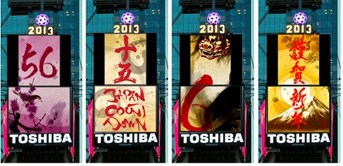 Not only will Toshiba be a part of the New York celebration, but Toshiba will help 16 other cities worldwide celebrate the “Cowntdown to 2014.” The parties will begin at 9:59 a.m. EST, with New Year 2014 kicking things off in Tokyo, with a 60-second countdown and Happy New Year and prayers for the Japanese people shown on the screen.