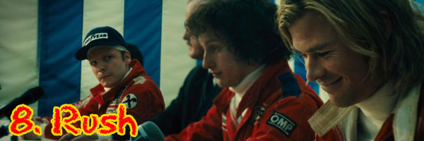 What Ron Howard achieves in “Rush’s” 123-minute running time is astounding. Not only is there an incredible amount of information on Formula One and the driving culture, but then we also get two robust big screen versions of James Hunt and Niki Lauda as well as added context through their dynamic rivalry and friendship. Both men have assets and flaws and they rode two completely different work ethics to the top, but Howard never colors one right and the other wrong, just as he never entices the viewer to root for one driver over the other. “Rush” is about getting to know two Formula One icons, understanding and accepting their motivations, and then watching as unforeseen events tip the scale. The characters and their connection are remarkably engaging and so is the action of “Rush.” When Daniel Brühl and Chris Hemsworth get behind the wheel, you’re right in the car with them thanks to the combination of brilliant shot composition and impeccable sound design. “Rush” is an all-consuming watch in every respect.
