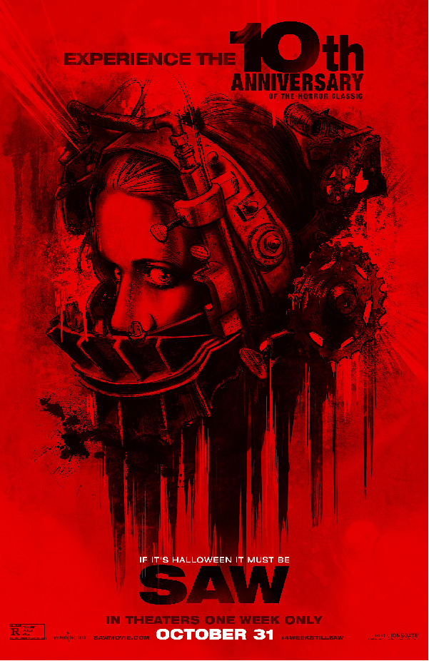 The week-long limited engagement of ‘Saw’s return to theaters begins with late screenings tonight. The movie also stars Danny Glover, Monica Potter, Michael Emerson and Ken Leung. For more information on the horror film, visit its official website.