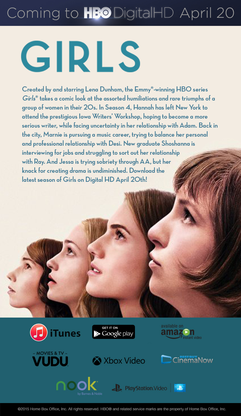 Viewers can bring some of the most comedic, dramatic and grippingly relatable characters on two of HBO’s most critically-acclaimed series, ‘Girls’ and ‘Looking,’ home and on-the-go with them later this month. The premium cable television network is releasing ‘Girls’ Season 4 and the second season of ‘Looking’ on Digital HD on April 20, before it distributes the shows on Blu-ray and DVD.