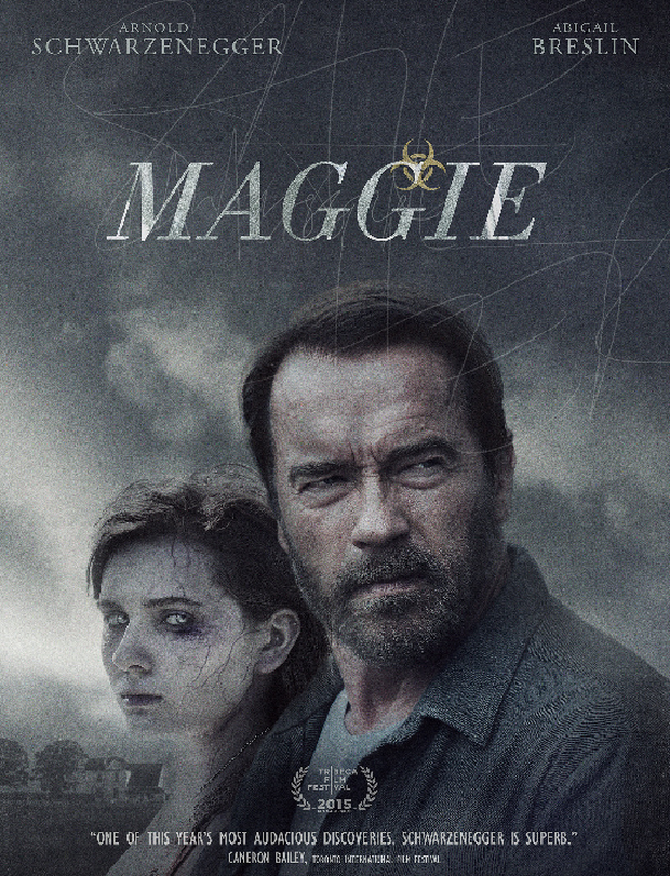 Wade Vogel (Schwarzenegger) is not ready to give up his daughter. After weeks of searching for Maggie when she runs away after receiving her diagnosis, Wade brings his daughter back to her home and family, including her stepmother, Caroline (Joely Richardson), and her two younger siblings-for whatever time may be left as the teenager begins an excruciatingly painful metamorphosis. Having lost Maggie’s mother years earlier, Wade is determined to hold on to his precious daughter as long as he can, refusing to surrender her to the local police who show up with orders to take her. As the disease progresses, Caroline decides to take their two younger children and move out, leaving Wade alone with Maggie to watch helplessly as she suffers.