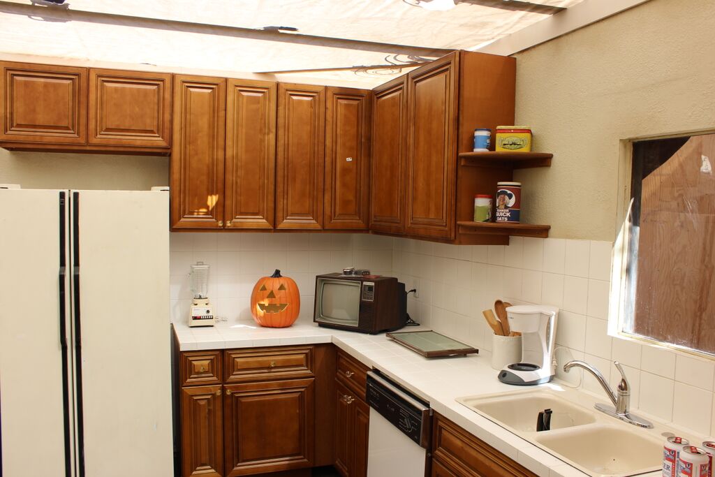 The maze will pretty much take you through the plot of the entire first Halloween film and including getting real close to Michael in the the hanging laundry section and shrubbery walls. The centerpiece of the maze will be the scene were Laurie finds all of her friends killed throughout the room and the Judith Myers’ gravestone on the bed over Lynda’s body. The closet door and nook where the rest of the bodies will be are set to open and close as guests come through to see the scene as Laurie would have.