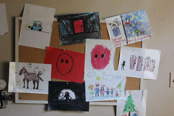We’ll journey into the kids room from Ch.1 with the freaky red faced demon which will have a cool effect using projections. Here’s a look at the art from the film that the kids have on their wall with foreboding images of the demon’s lair which leads us right into it.