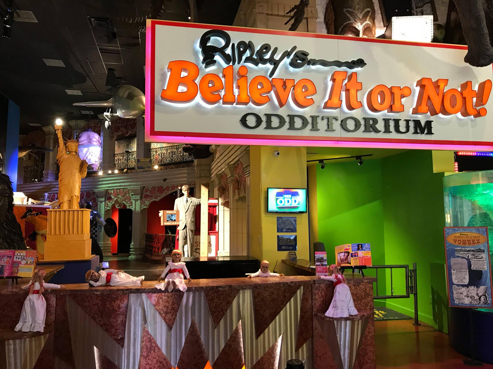 A group of 13 Annabelle dolls from New Line Cinema‘s upcoming horror prequel, ‘Annabelle: Creation,’ which were created by the award winning Mezco Toyz, took over the popular 42nd Street landmark, which is the largest Ripley’s museum attraction in North America. The Annabelles attempted to hide amongst the Odditorium’s collection of over 500 unusual artifacts from all over the world, as well as within its unique interactive exhibits.