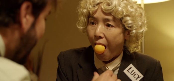 In Japan where suicide is not looked upon as an entrance to an eternity in hell, we may wonder if occasionally the principal character in Oh Lucy! might be a candidate for oblivion. She’s a sad sack, working as a data-processor in a claustrophobic office, seeing her future in the form of an elderly spinster whose retirement party she attends. With a mean spirit, she assures the new retiree that behind her back her colleagues call her a fat pig and a waste, and her testiness will emerge later with her sister. Her home life is worse. Lucy might seem an odd name for a Japanese woman (played by Shinobu Terajima) but we find out soon enough how she got this nom de étudiante though she spent some forty years as Setsuko. The woman, a spinster in her forties with little hope of a lasting relationship with a man, certainly tries her best anyway, and in the hands of director and co-scripter Atsuko Hirayanagi in her freshman full-length feature which has been expanded from a 22-minutes thesis short, we can accept that a movie starting as absurdist comedy turns to melodrama and even tragedy.