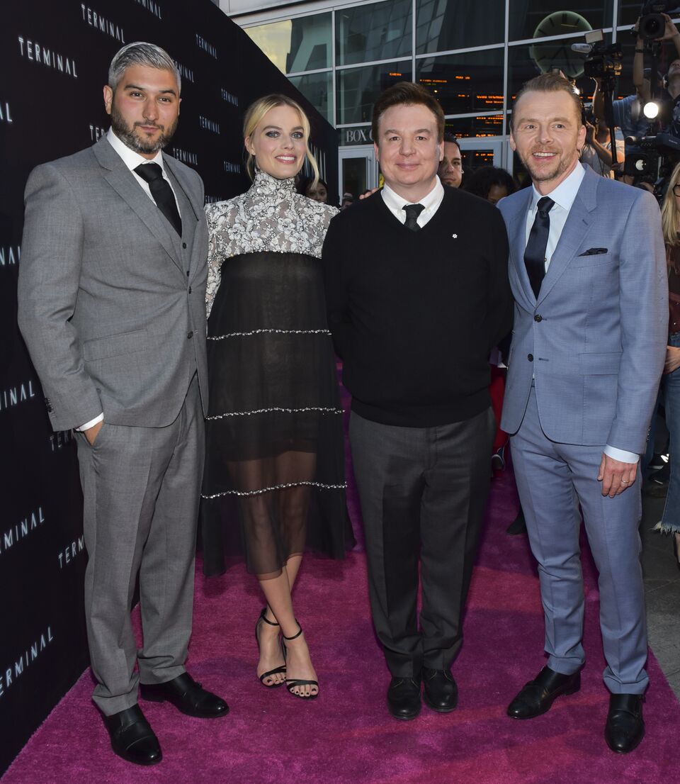 (L-R) Writer-director Vaughn Stein, Margot Robbie, Mike Myers and Simon Pegg attended the World Premiere of their crime thriller, ‘Terminal,’ at Arclight Hollywood on May 8, 2018.