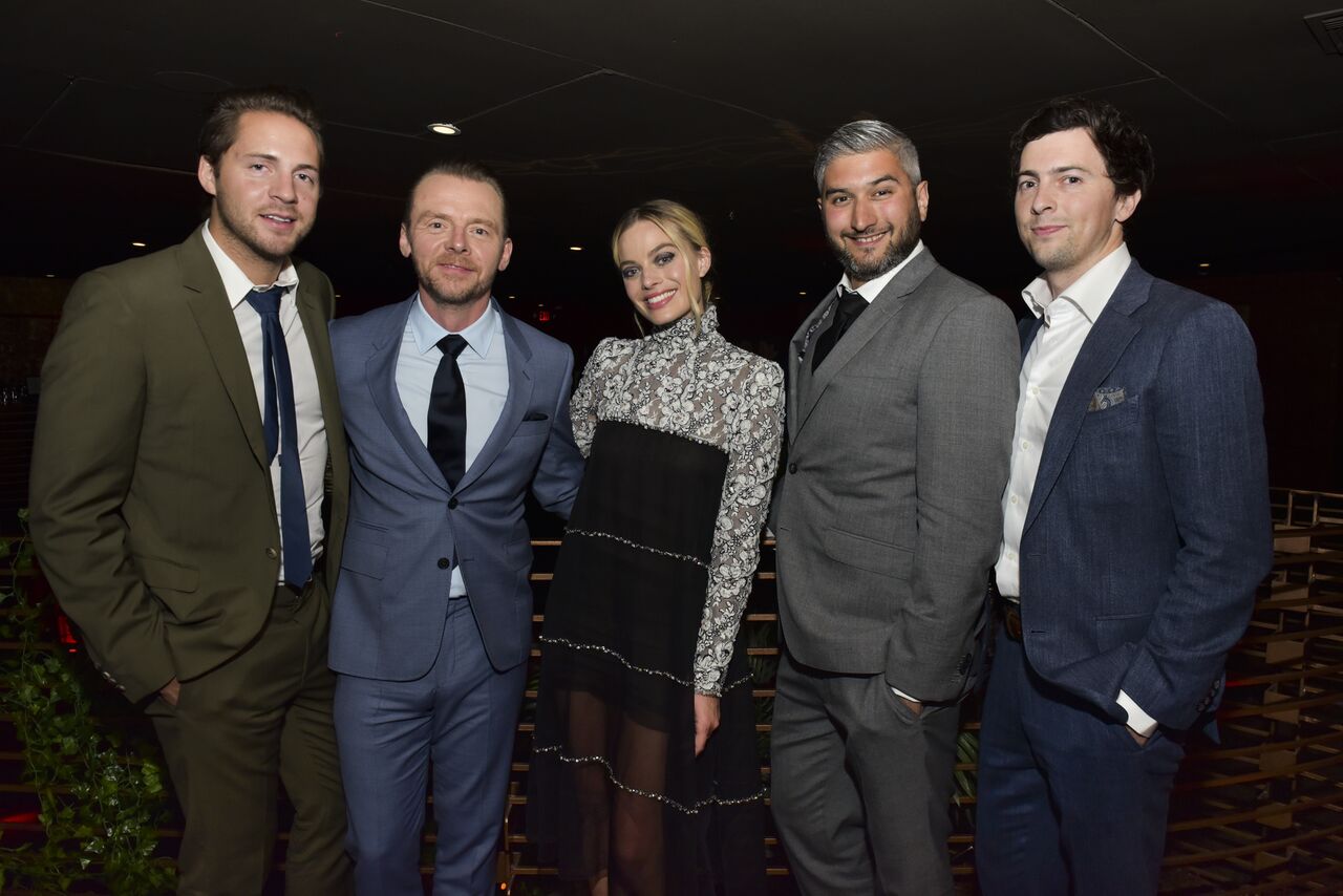 (L-R) Producer Tom Ackerley, Simon Pegg, Margot Robbie, writer-director Vaughn Stein and producer Josey McNamara attended the World Premiere of their crime thriller, ‘Terminal,’ at Arclight Hollywood on May 8, 2018.