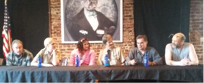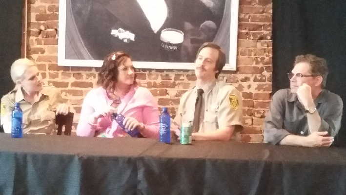 The journalists then traveled to the Iris Bred Pub & Restaurant to participate in an interview with Gould, MCGinley and Varney. The trio was accompanied by actress Deborah Baker, Jr., who plays Stan’s daughter, Denise; actor Nate Mooney, who portrays Deputy Leon Drinkwater, Evie’s right-hand man; and David Koechner, who plays Kenny, Evie’s ex-husband and the father of her daughter, Gracie.