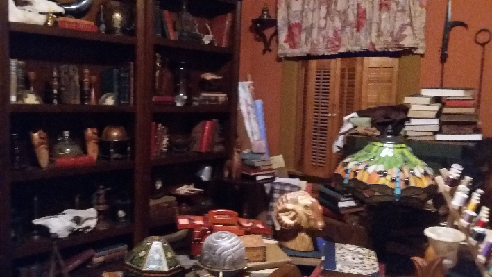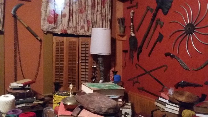 Stan’s shelter is comfortably situated on a large parcel of property that’s lined with old trees that seemingly protect him from the monstrous creatures, as well as his fellow residents in his New Hampshire town, that haunt him. Upon initially entering the home, the reporters caught a glimpse of Stan’s favorite and worn recliner in his living room, where he often sits to escape his troubles. The tour continued through the title character’s kitchen, before ascending up a narrow staircase, whose wall was lined with Miller family photos. The second level of the house featured the sewing room, where Stan’s late wife, Claire, stored her books and weapons. The upstairs also includes the married couple’s bedroom, which the anti-hero keeps as a memorial of sorts to his spouse.