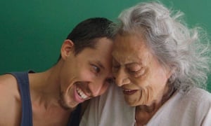 The brothers’ grandmother América lives in the state of Colima, a woman who may no longer be a vibrant human being but who lucks out by having grandsons to take care of her. Diego is the most committed. He bathes her, talks to her, kisses her while straightening her hair, and forces her to exercise when all she wants to do is return to her bed. In one scene he demonstrates tough love by insisting that she stand up straight, though América wants at least to hold his hand.