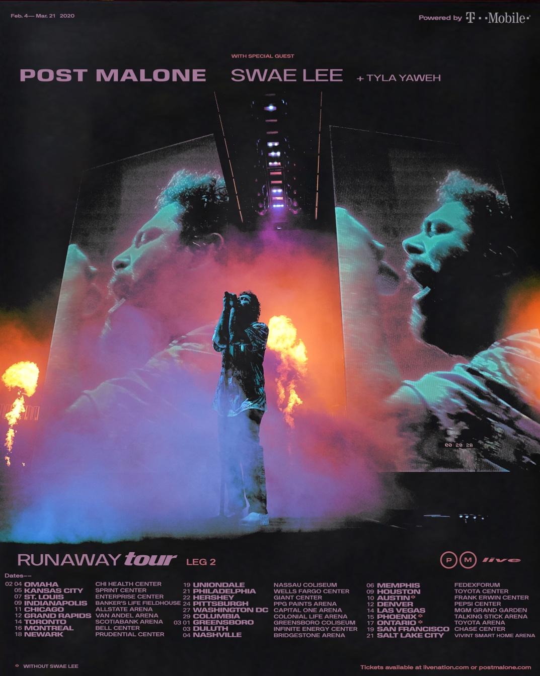 Produced by Live Nation, the Runaway Tour returns to the road on February 4 in Omaha, Nebraska at CHI Health Center. The show will then visit major cities across the United States and Canada. The show closes out on March 21 at Vivint Smart Home Arena in his new home of Salt Lake City. Dates for the tour can be found on Post Malone’s official website.