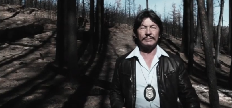 In the clip, Bronzi’s cop orders Sweet’s heroine to drop her weapon, and put her hands up, as he pursues her in a forest. While she initially distrusts him and refuses to follow his order, she eventually listens and becomes grateful for his help, as he reveals to her that he’s an officer.