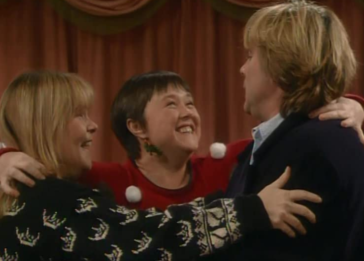 Alun Lewis, Pauline Quirke and Linda Robson star on the ‘Christmas in Dreamland’ episode of the British sitcom, ‘Birds of a Feather.’