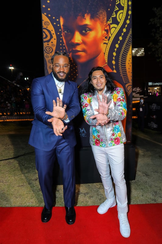 Mexico City, Mexico – November 9: Director Ryan Coogler (L) and Josue Maychi (R) pose for a photo during the Wakanda For Ever Red Carpet in Mexico City at Plaza Satellite on November 9, 2022 in Mexico City, Mexico. (Photo by Agustin Cuevas/Getty Images for Disney)