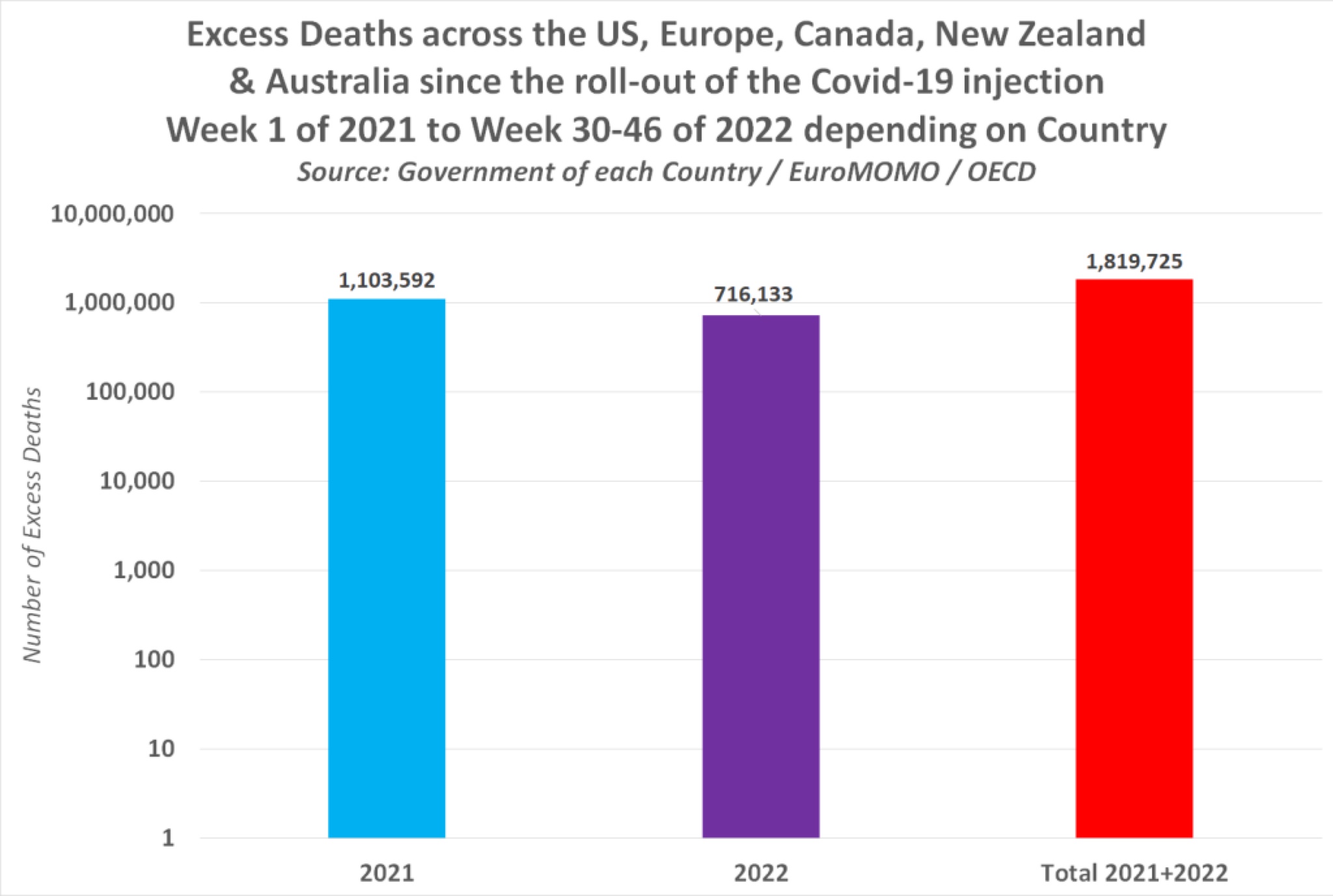 Official reports published by the Governments of he US, the UK, Australia, New Zealand, Canada and most of Europe confirm almost two million deaths have been linked to the COVID vaccine since its mass roll-out.