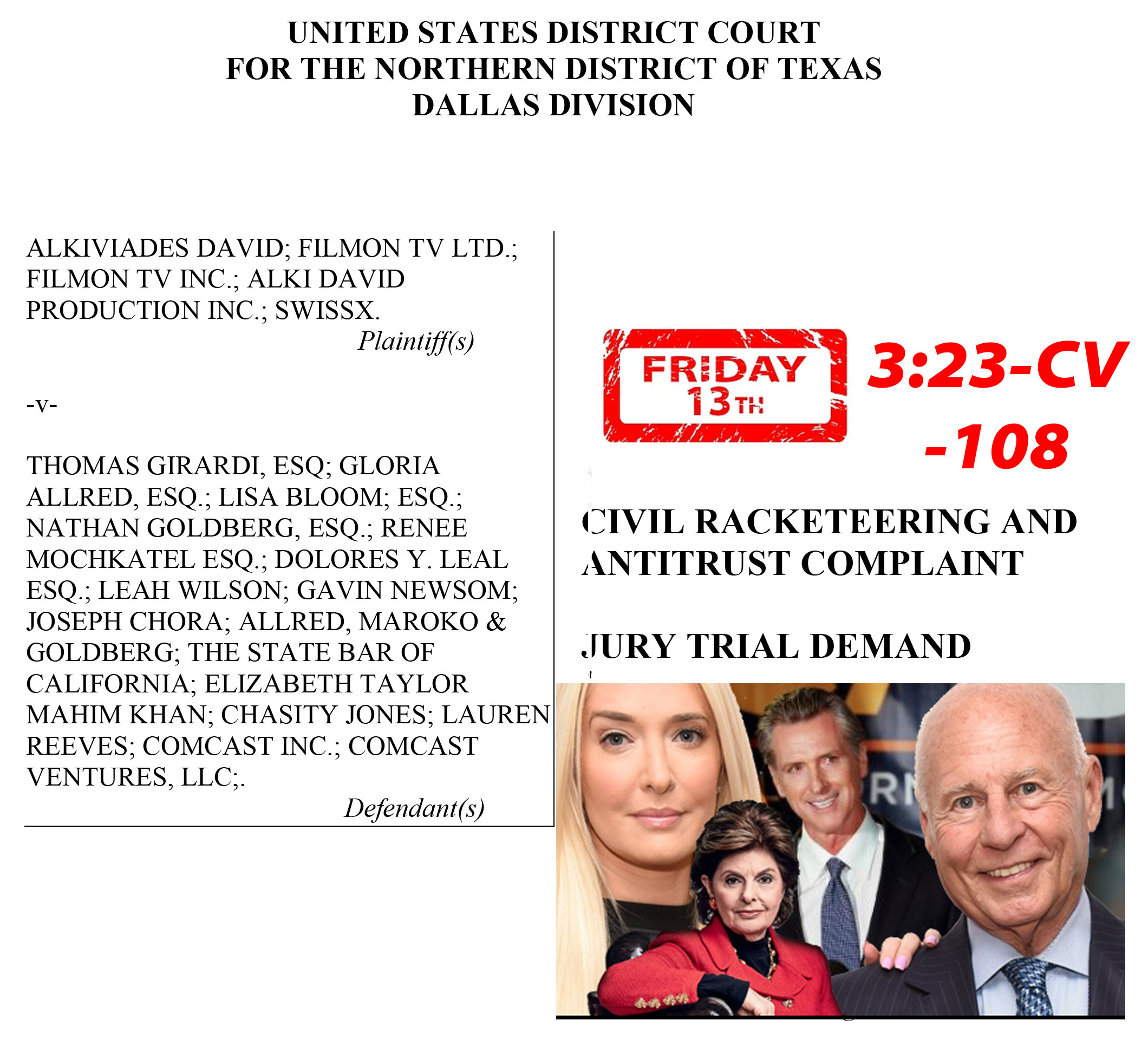 A RICO Lawsuit was filed today in Dallas, Texas by SCOTUS-veteran attorney Mark Lieberman who filed in Federal Court against Comcast Ventures, Girardi Keese, Gavin Newsom, Gloria Allred, Lisa Bloom and others.