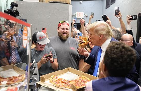 Despite being the first ex-president to face criminal charges, Trump seemed relaxed and in good spirits. He even took a bite of his slice and offered it to one of the ‘Trump’-chanting patrons in the crowd around him. However, the patron turned down the offer, leaving some to wonder what a slice of pizza from Trump’s hand could be worth to a MAGA collector.