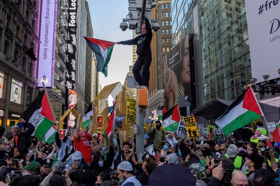 Cries of “Free Palestine” rang out in New York on Friday, as thousands of protesters took to the streets to denounce Israeli bombings in the Gaza Strip. https://t.co/qCYUjoPMqc https://t.co/E0PwRjcZWT