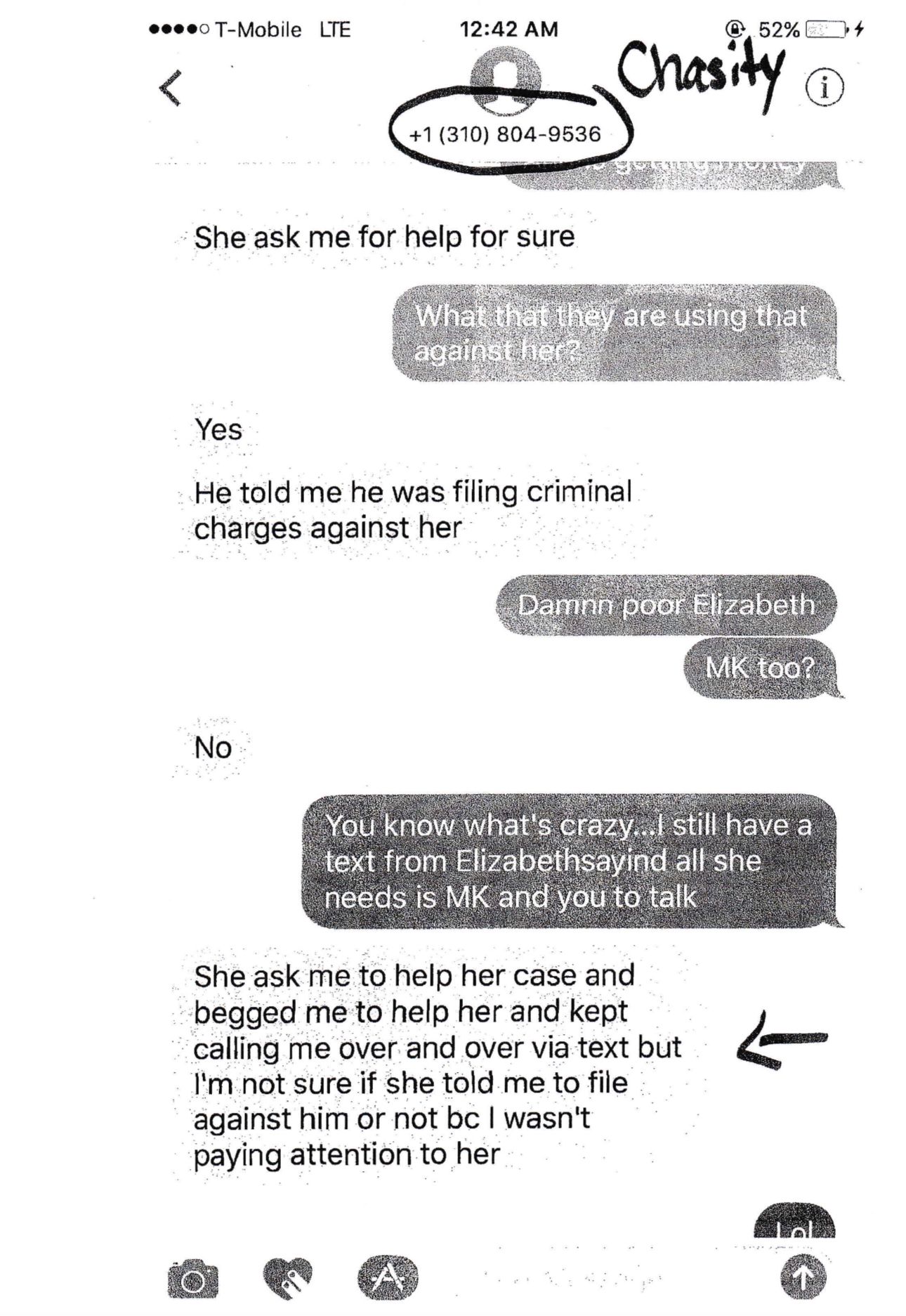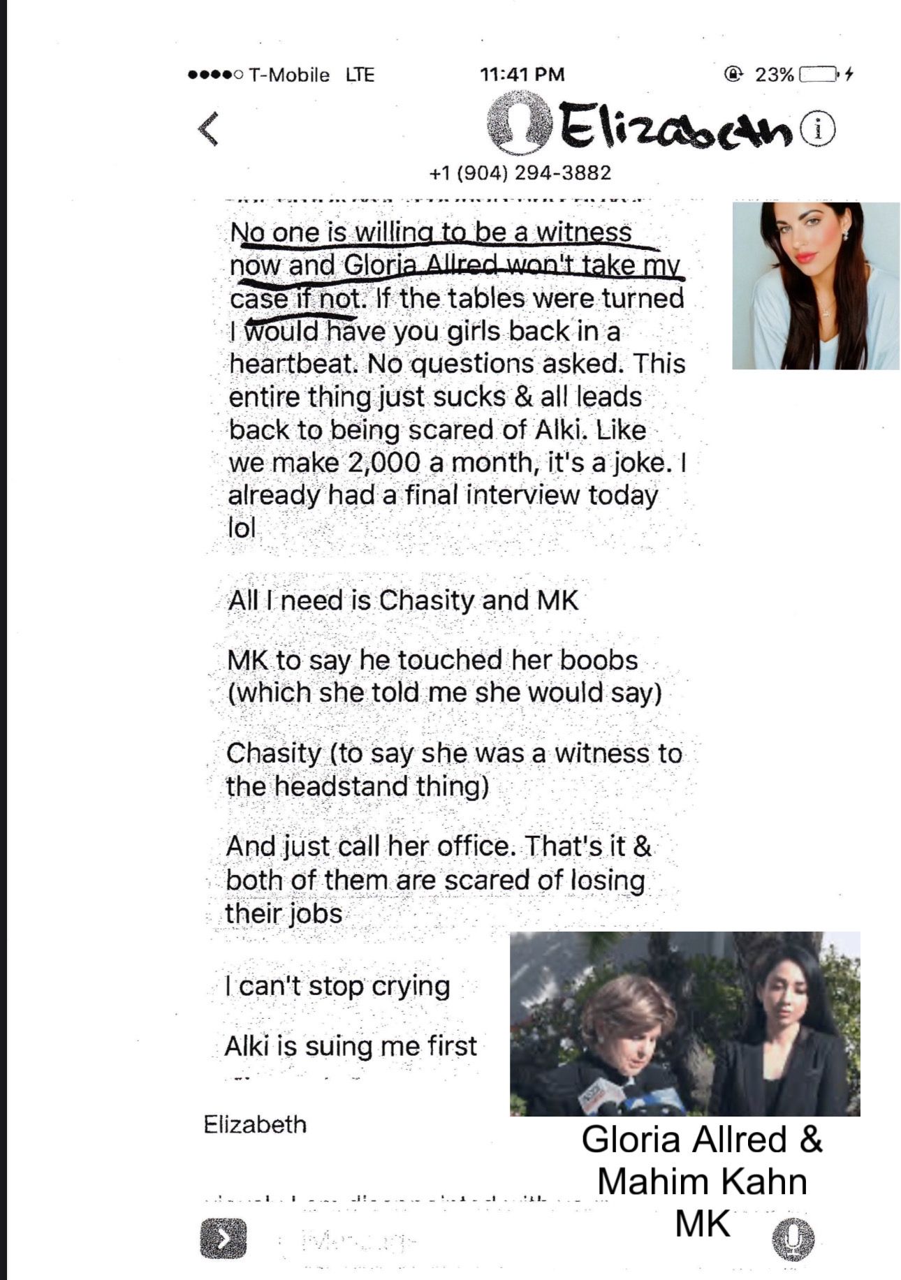 In these TEXT messages provided by Mary Rizzo after the MAHIM KAHN trial in Los ANgeles. MK in the texts refers to Mahim Kahn.