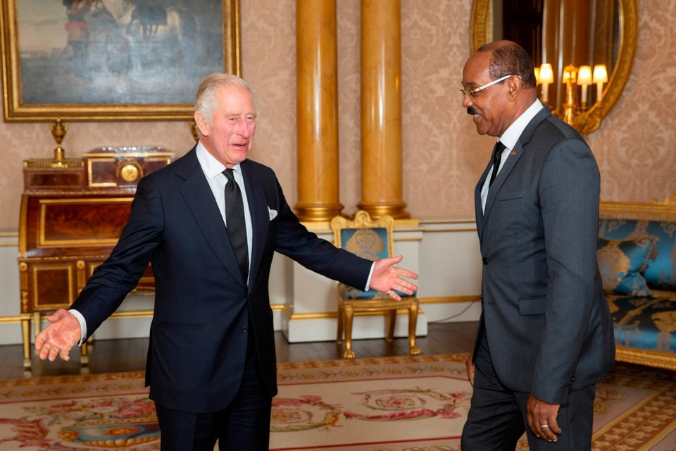 King Charles meets with Prime Minister Gaston Browne. The United Kingdom and Antigua share Common Law.