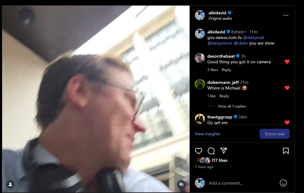 Aug 4, 2025, 1:00 PM – Filming outside Mirror Group HQ (exposing corporate misconduct).