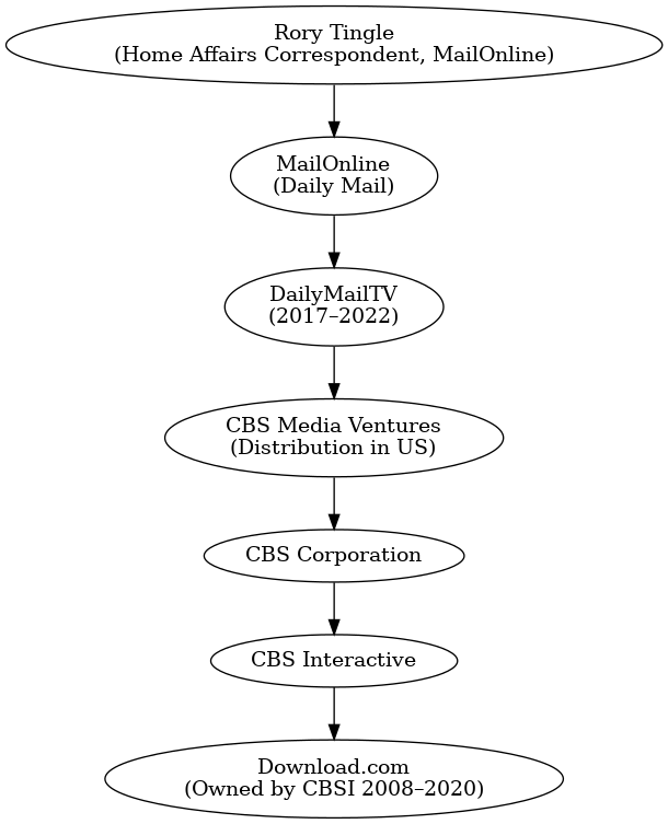 A direct corporate chain links the Daily Mail through CBS Media Ventures to CBS Interactive’s Download.com, a platform repeatedly tied to the distribution of Child Sexual Abuse Material (CSAM).