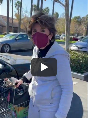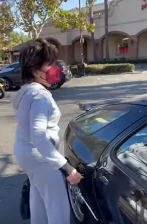 Allred at her car, mask on, refusing to answer allegations of fraud and collusion.