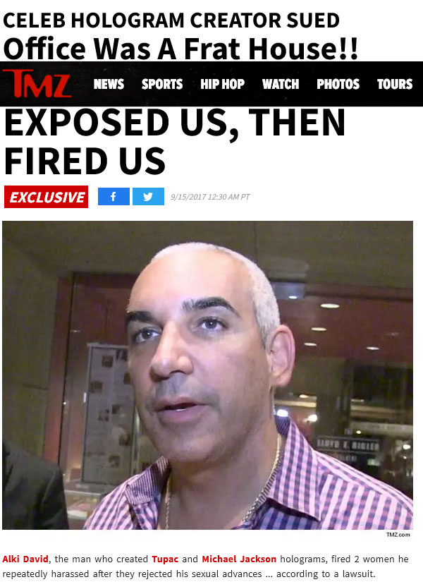 The Plaintiff notes that despite worldwide press headlines portraying sexual harassment, the underlying facts of the Elizabeth Taylor v. Alki David case prove otherwise: