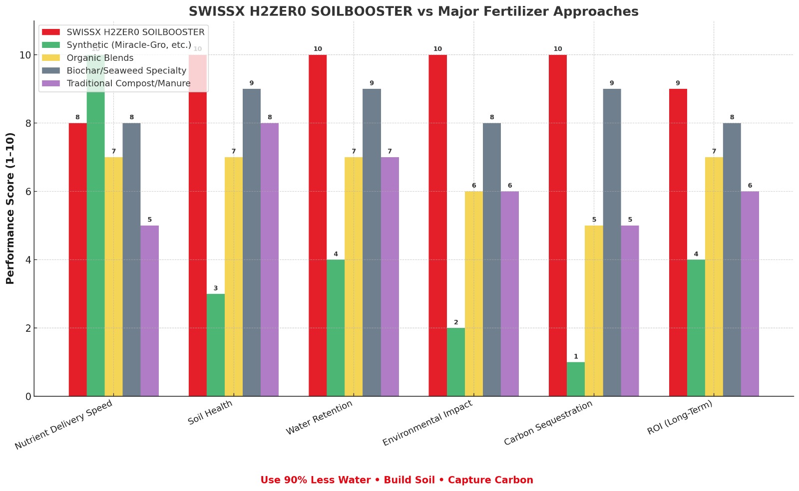 +50% yield increase across crops. 50% less watering annually — zero irrigation in rainy spells. Restores soils to volcanic fertility (pH 7.0, balanced NPK). Earn $400–$1,200 USD/acre annually in carbon credits. 20% discount now available for Caribbean farmers.