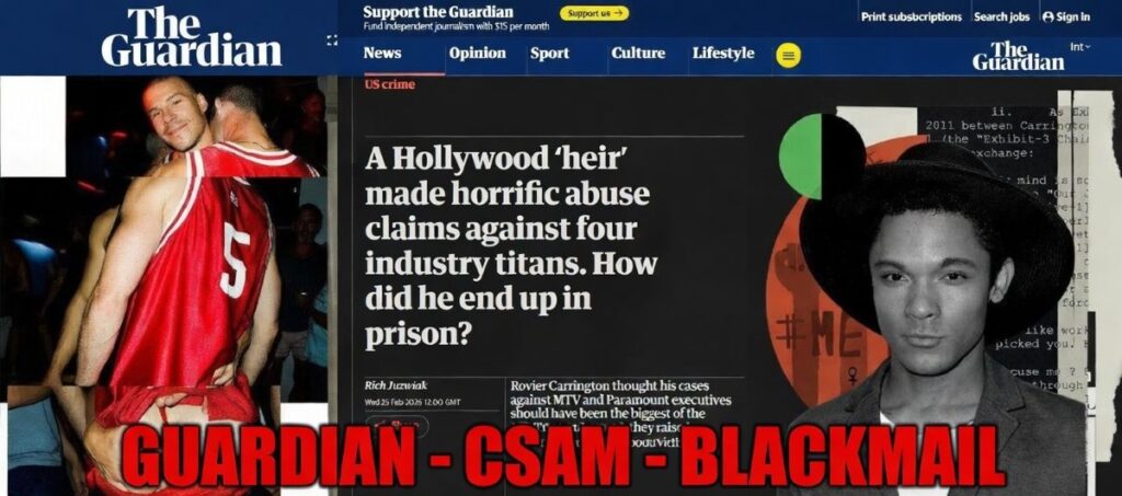 Your 3,000+ word takedown (A Hollywood ‘heir’ made horrific abuse claims against four industry titans. How did he end up in prison? – https://www.theguardian.com/us-news/2026/feb/25/rovier-carrington-hollywood-abuse-claims-prison) dissects Rovier Carrington’s U.S. perjury conviction with forensic detail — while deliberately erasing the truth: Carrington is now a material declarant in active, multi-jurisdictional proceedings exposing the very Hollywood-media power structure you refuse to name.