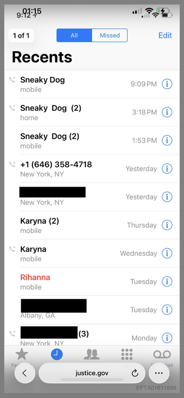 RIHANNA IN EPSTEIN’S PHONE LOG