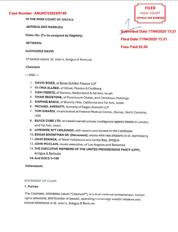 The complaint arises directly from proceedings in Claim No. ANUHCV2025/0149, part of broader litigation involving jurisdictions in Antigua, the United States, and the United Kingdom.