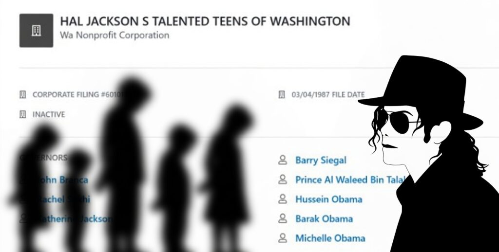 THE CARTEL USES SOHO HOUSE BASED KIDS’ CHARITIES AS COVER The same syndicate hides its trafficking, recruitment and kompromat operations behind children’s charities. Exhibit A: The inactive Washington nonprofit “Hal Jackson’s Talented Teens of Washington” (Corporate Filing #601013377, filed 03/04/1987). Governors listed: John Branca, Hussein Obama (Barack Obama), Prince Al Waleed Bin Talal, Katherine Jackson, Barry Siegal, Rachel Sakhi. A kids’ talent program used as a clean front by the exact same players already named in the NXIVM-Epstein network.