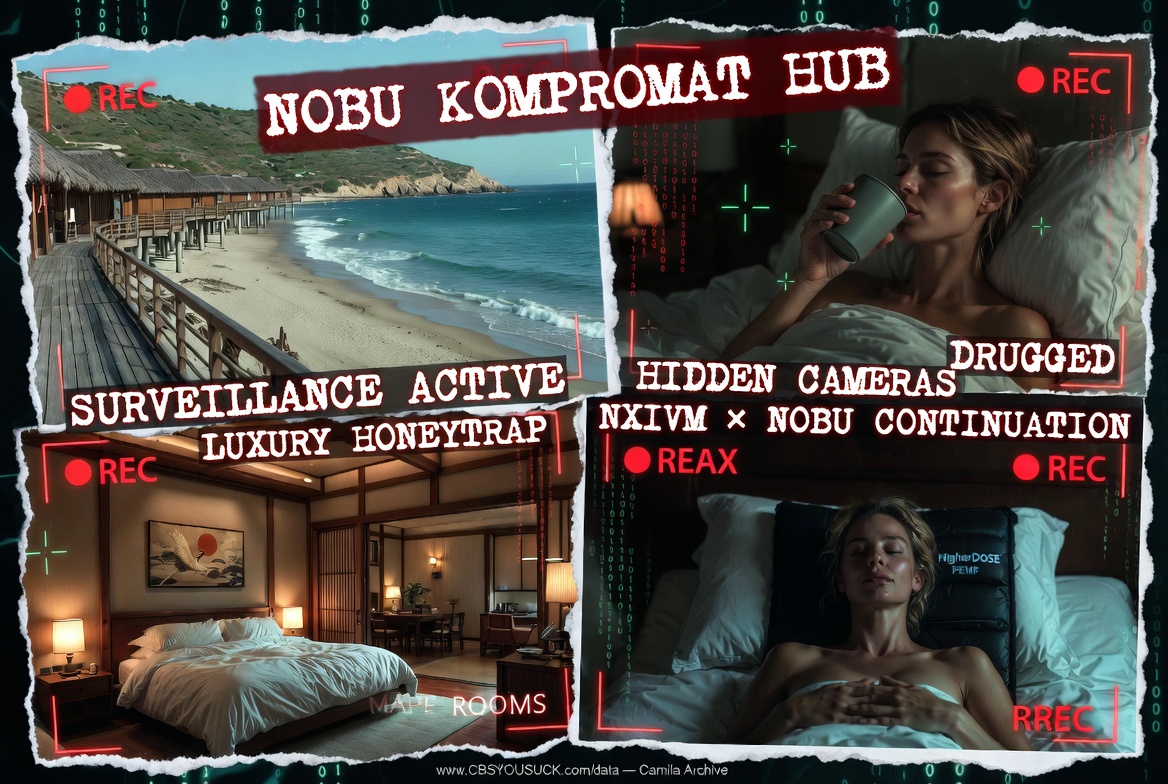 At the centre of David’s allegations is a continuing NXIVM operation that has allegedly rebranded into the Nobu Barbuda luxury hospitality network — with Sean “Diddy” Combs deeply involved. The system is described as a sophisticated kompromat machine: glamour as bait, surveillance as control, and blackmail as currency. New Nobu Malibu images circulating online only intensify the picture — luxury suites, in-room “rituals,” and wellness setups now viewed through the lens of hidden cameras and compromise.