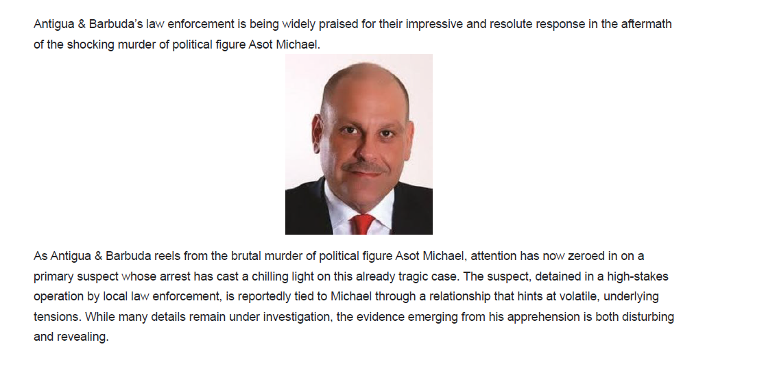 Alkiviades David has now submitted a major dossier to CID Antigua demanding expansion of the Asot Michael murder investigation. New Scotland Yard evidence reveals a network of prominent lawyers from major firms colluding around the exact time of Asot’s death to pressure him and silence exposure of the cartel.